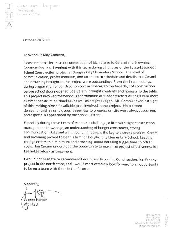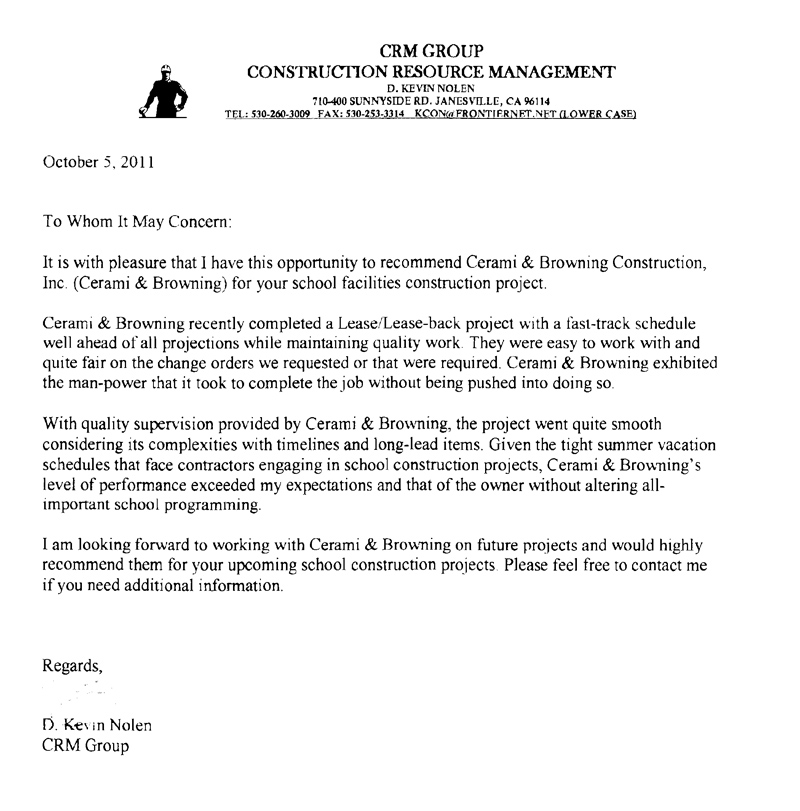 “I have worked with CBCI on California school project ranging from elementary to high school to community college facilities, for more than ten years. I have always found them to be most professional in their business dealings and their work to be of the highest quality.”